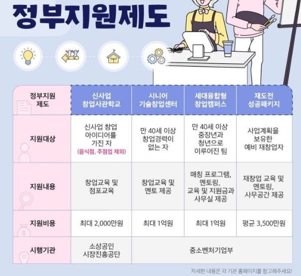 중장년 예비/초기 창업자들이 자금 지원을 받을 수 있는 대표적인 정부지원 과제들을 알아보자.